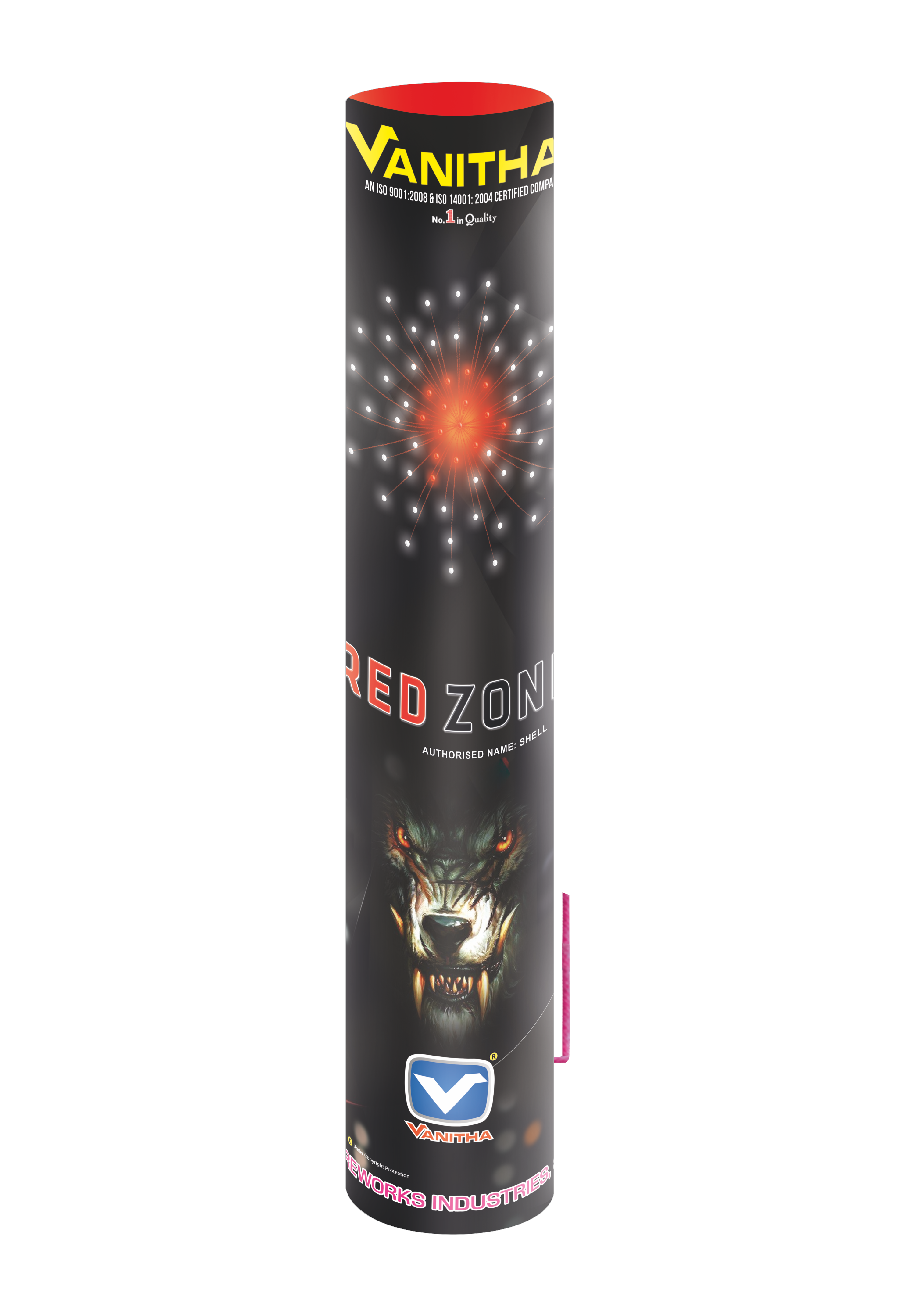 Shoots up & explodes with red coloured balls and a white glittering effect.