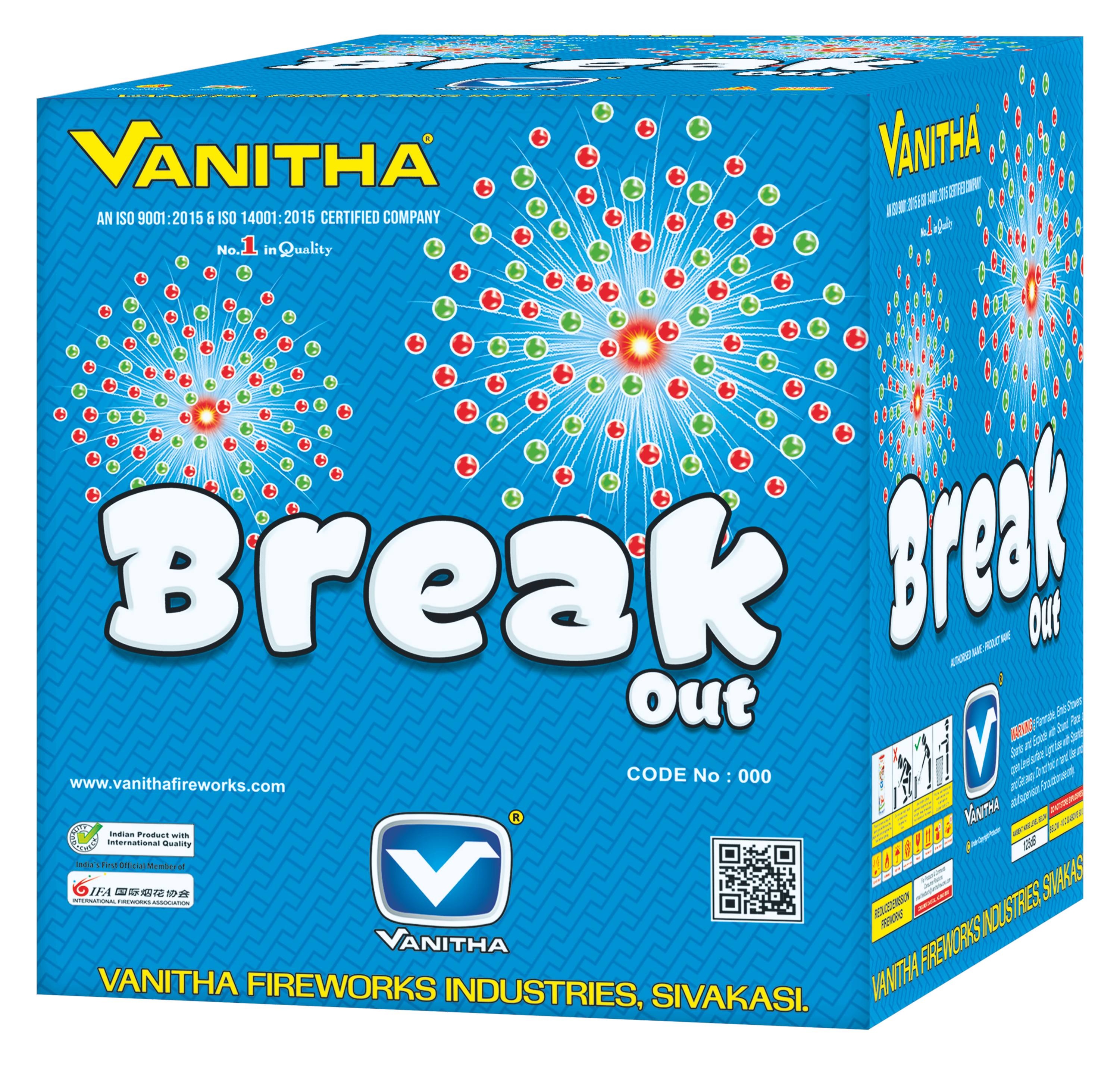 Shoots up and explodes with a red and green colour effect, 5 times repeatedly.